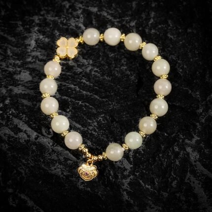 Four-Leaf Clover and Peace Lock Handcrafted Bracelet