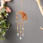 The Agate Moon Life Tree Sun Catcher is a stunning creation that embodies the powerful symbolism of the life tree, moon, and agate—stones and symbols revered for their grounding and protective properties.