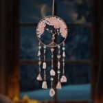 The City Love Dreamcatcher Sun Catcher is a stunning piece that brings the essence of romance and love into your space. With its delicate combination of Pink Quartz, Copper Wire, and an intricate Dreamcatcher design, it is not only a captivating decorative piece but also a powerful symbol of unconditional love, romance, and positive energy.