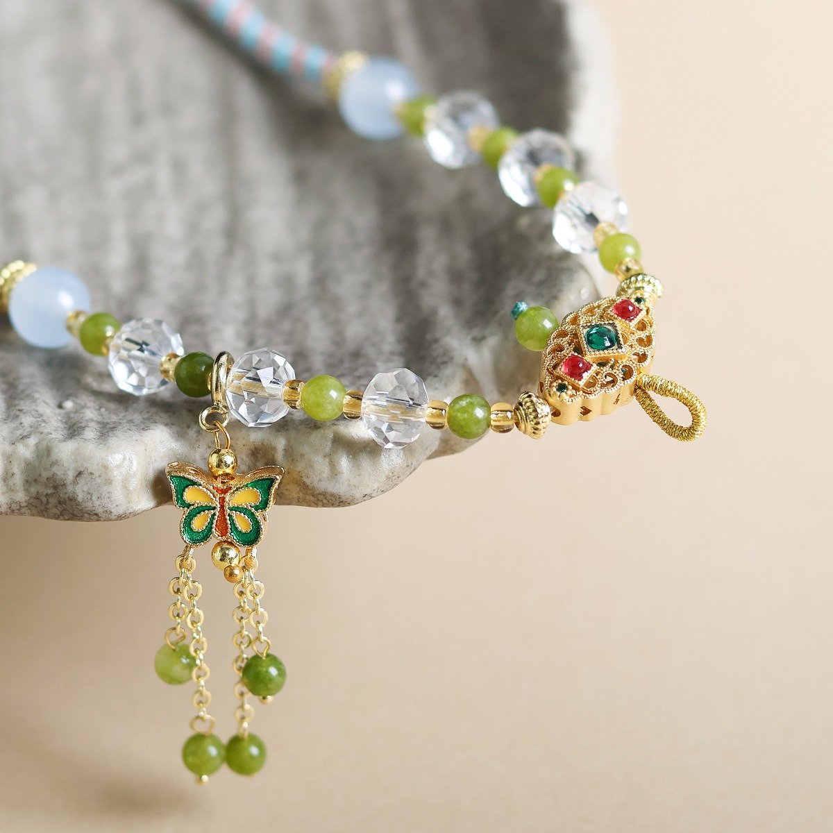 - Material: Handcrafted Cotton, Enamel Butterfly, Aquamarine, Jade, White Crystal, Alloy Components