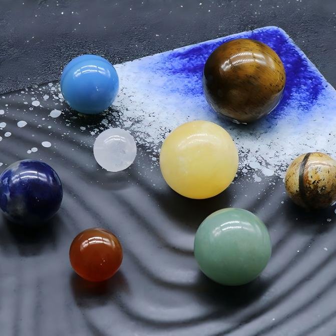 The 8 Planets Universe Set is designed to harness the energy of each planet to promote balance, healing, and alignment with the cosmic flow. The symbolic meanings behind each planet and its corresponding crystal include: