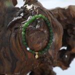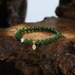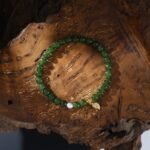This handcrafted bracelet, featuring vibrant jadeite, freshwater pearls, and alloy leaf accents, symbolizes vitality, life energy, and natural harmony. It enhances the wearer’s connection to the earth, fostering growth and positive energy.